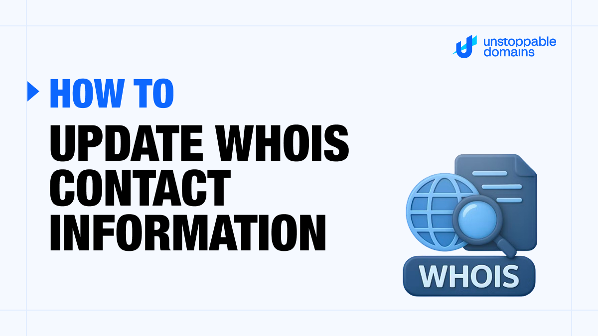 You can update your Whois contact information directly from your domain’s management page in your Unstoppable Domains account. Whois information is required for all DNS (Web2) domains to show ownership and provide contact details for the registrant, administrator, technical contact, and billing contact.