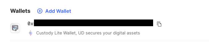 To transfer, you need the one that begins with 0x and says Custody Lite Wallet, UD secures your digital assets as shown below.