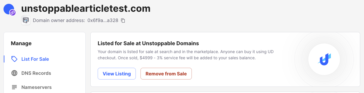 A custom checkout link is a unique, direct URL for your domain’s listing on the Unstoppable Marketplace.