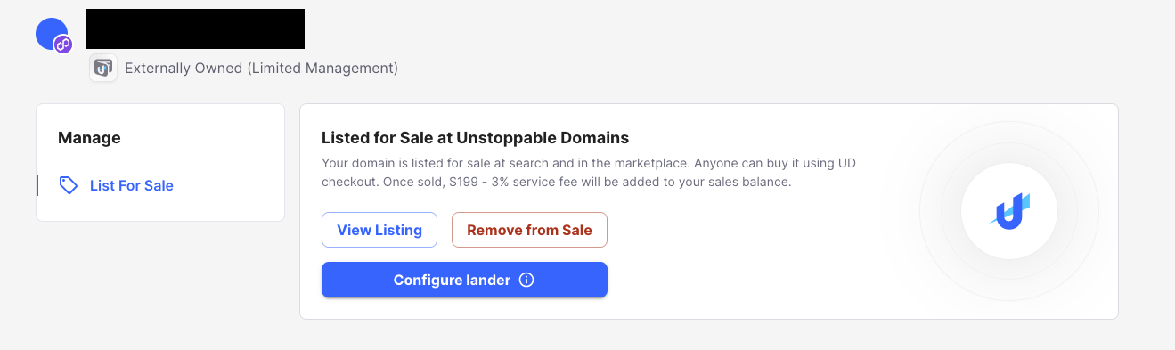 Unstoppable Domains allows you to list both externally owned domains (domains registered at other registrars) and internally owned domains (domains registered at Unstoppable Domains) on the Unstoppable Marketplace.