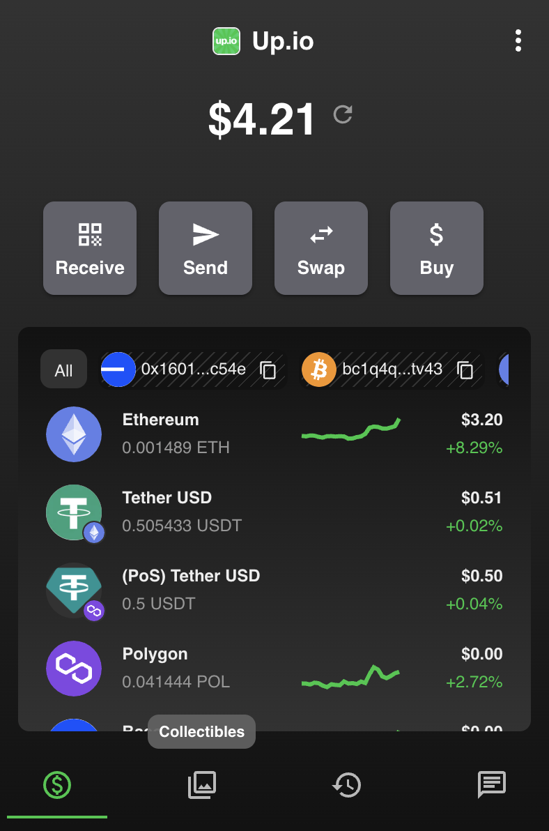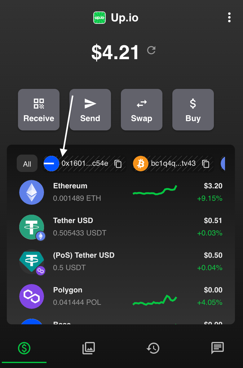 Locate the Ethereum/Polygon address from your up.io wallet. This will start with 0x. Copy this address for later: