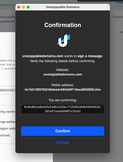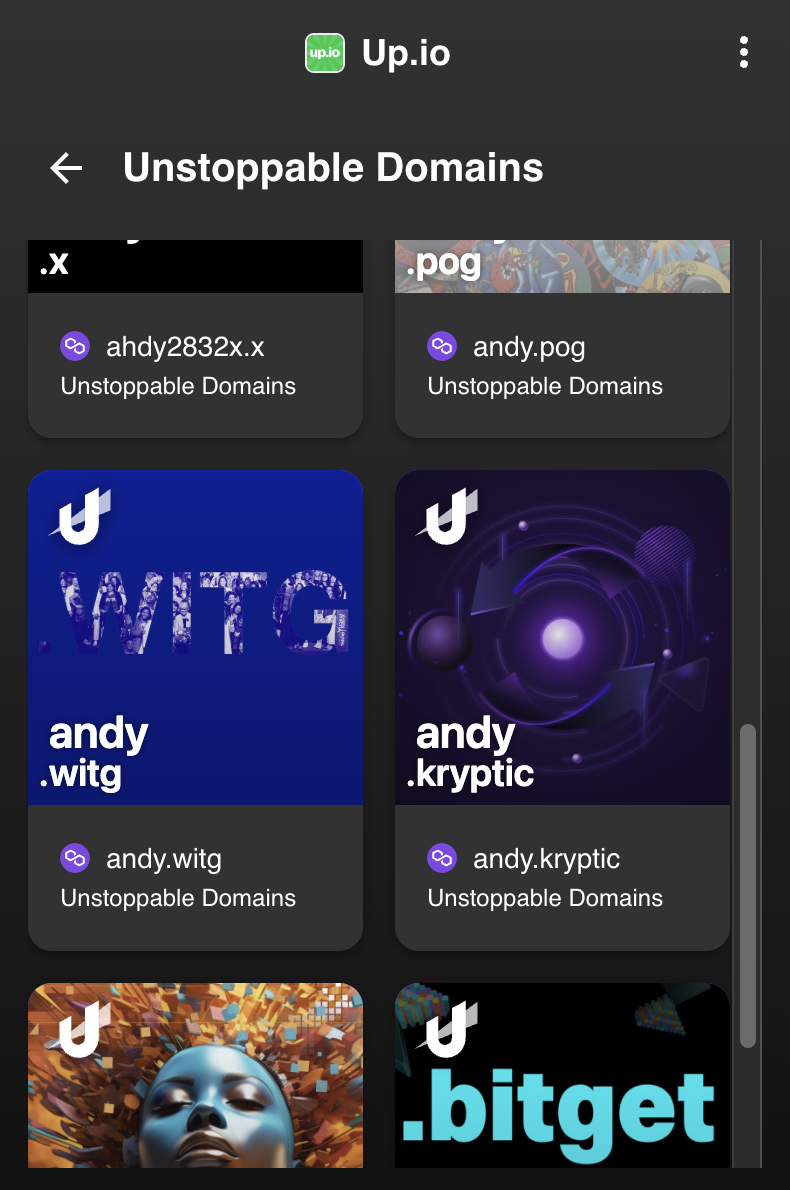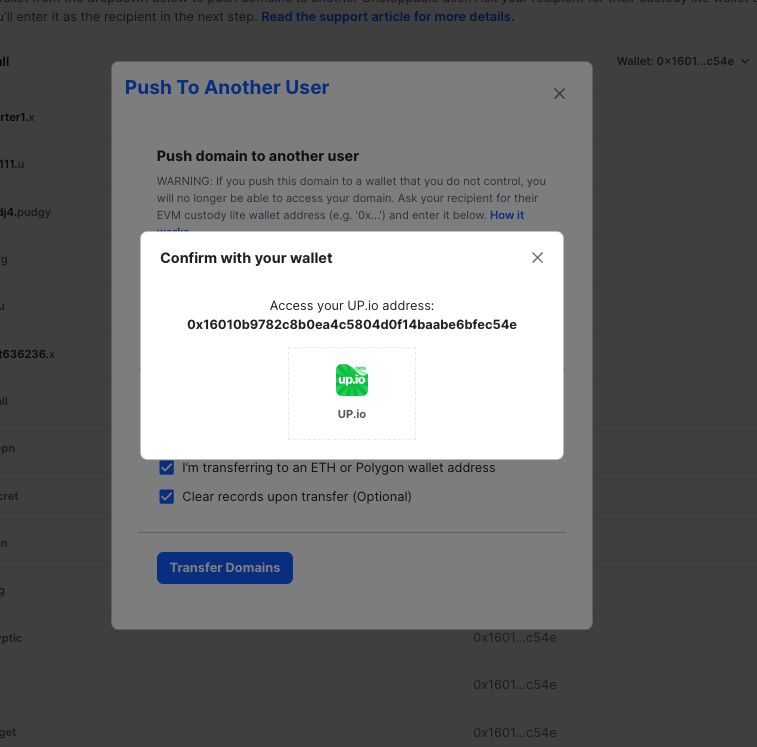 Then, log in to unstoppabledomains.com on the same browser that has the up.io extension.